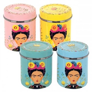 FRIDA DOSE 11,5x8x8cm METALL EMAILLIERT PASTELL-MULTI, Etikett € 18.50 |
